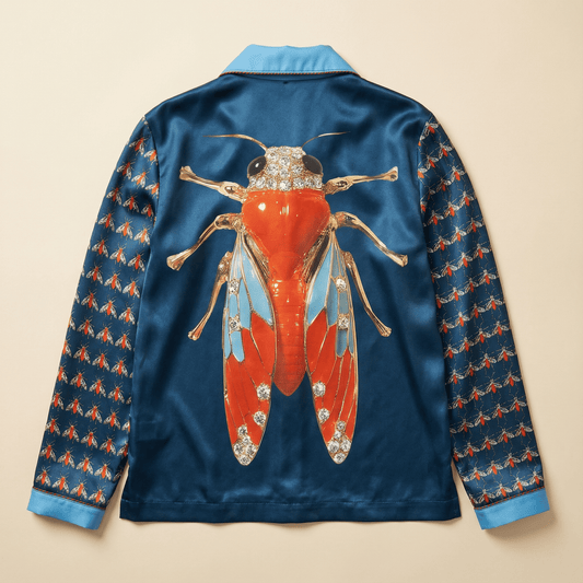 The Entomologist's Garden Silk Pajama Shirt in Jeweled