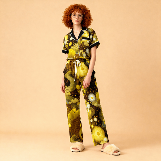 Sketching Summer Silk Short Sleeve PJ Top in Yellow