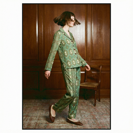 Palazzo Verde Silk Pajama Pants in Versailles Green